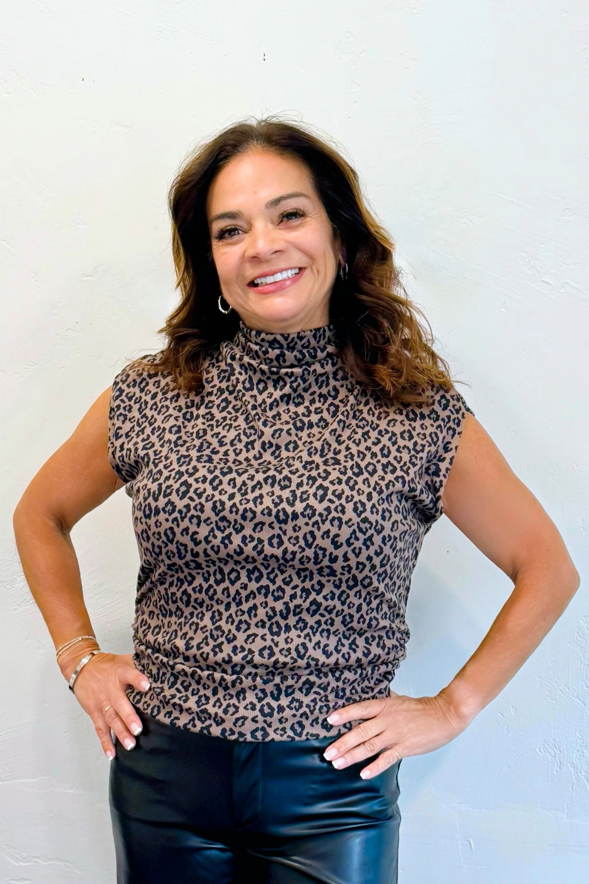 Amara Leopard Print Power Shoulder Top by Michael Stars
