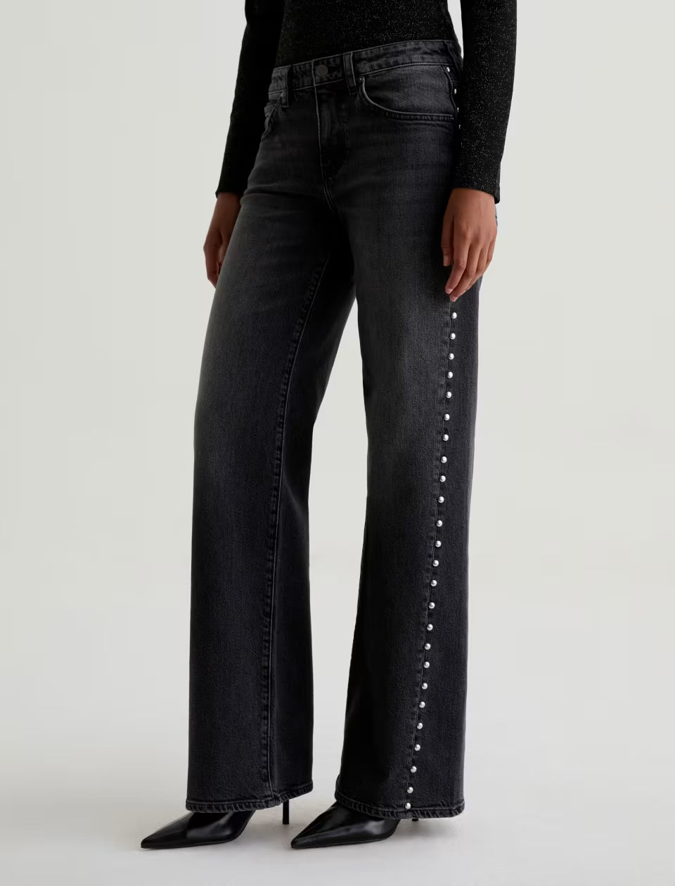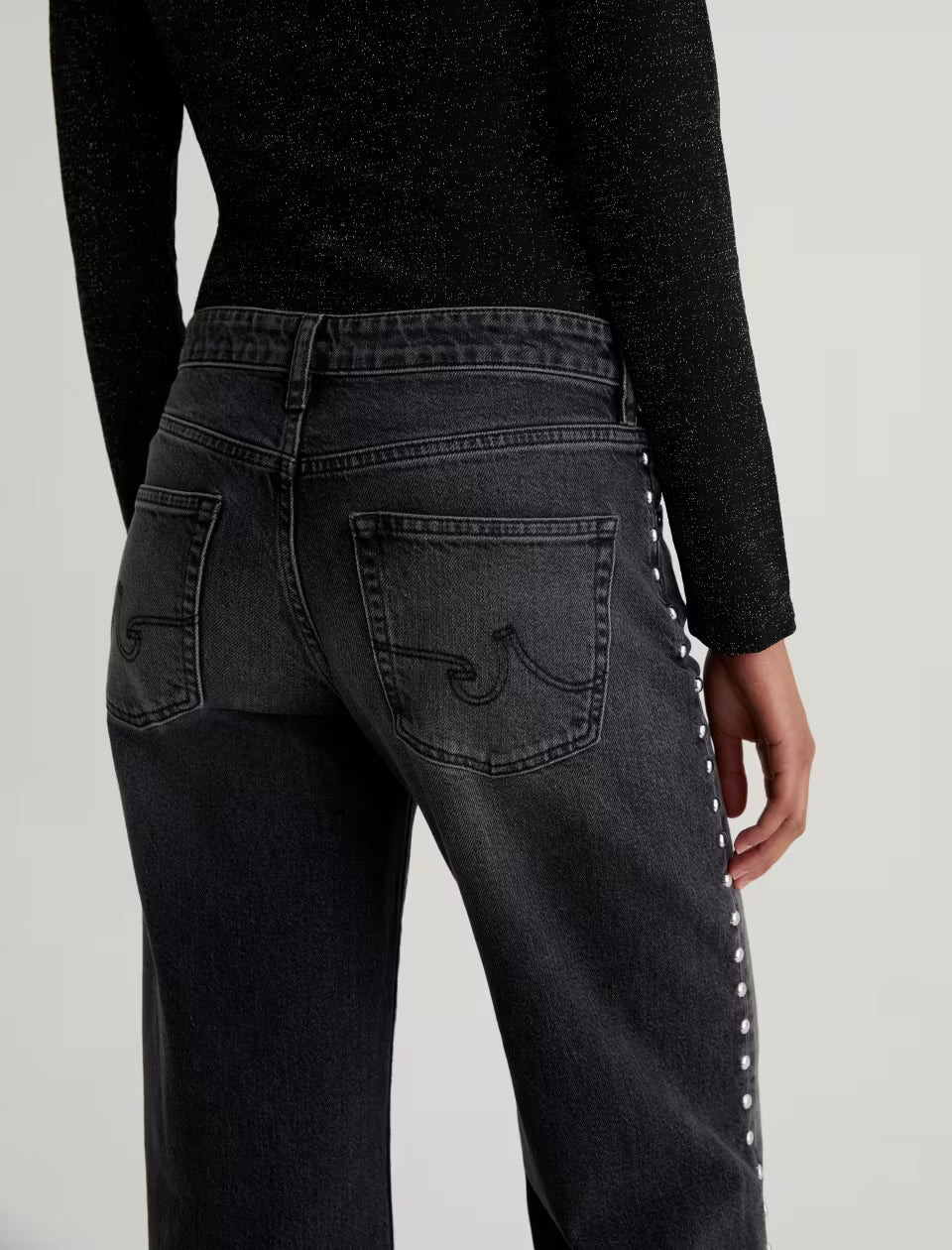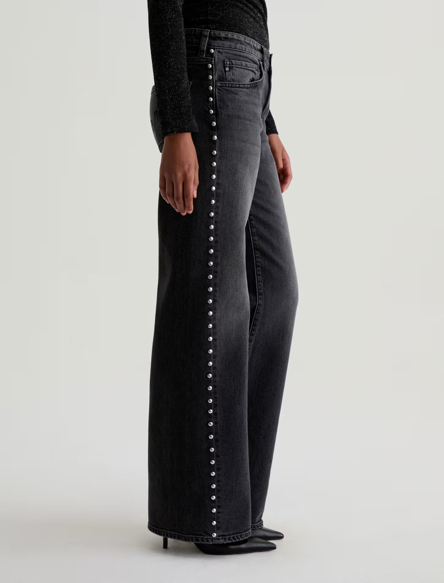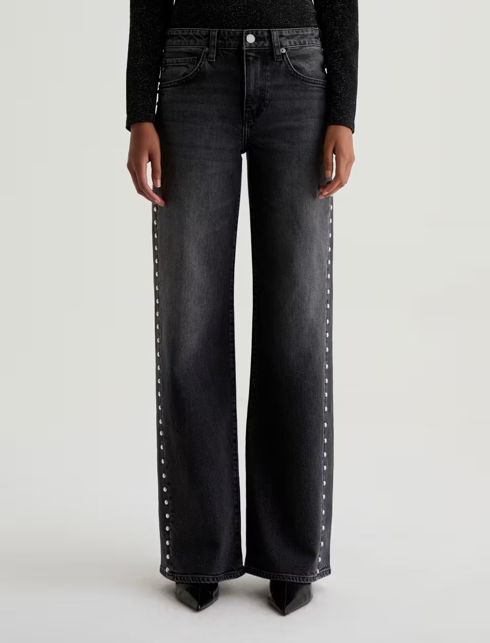 Adria Studded Jean – Immensity | Black Low-Rise Wide-Leg Denim