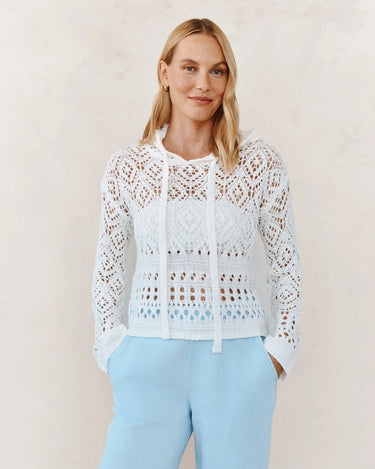 Lightweight Open-Knit Crochet Hoodie - White | Bella Dahl