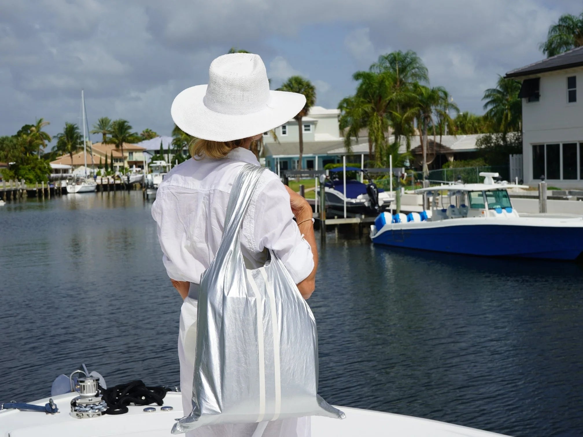 Styling suggestion: Pair the silver tote with athleisure or denim for a modern, elevated errand look — or grab the navy stripe for a coastal-chic vibe that’s perfect for beach days and weekend getaways.