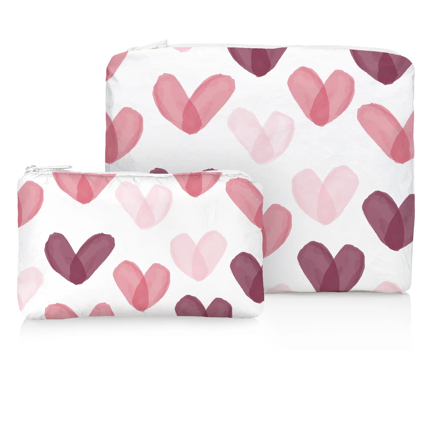 Hi LOVE Set of Two Organizational Pouches – Language of Love Pink Heart Print