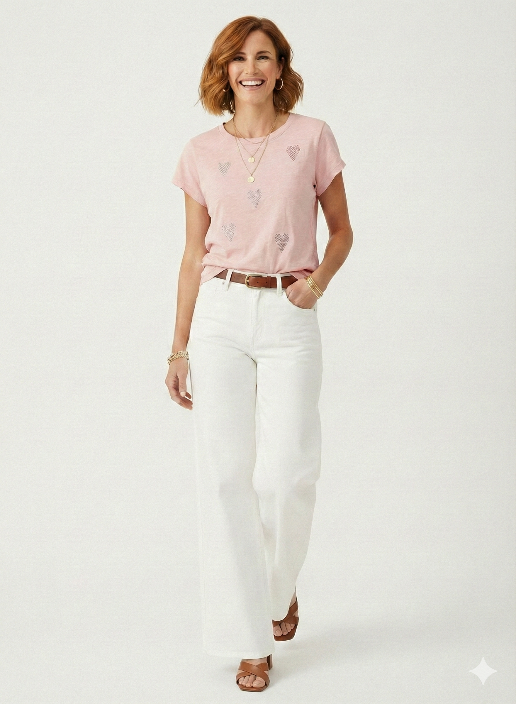 Looking for the perfect blend of NYC-crafted luxury and everyday sparkle? This premium slub cotton tee features brilliant crystal hearts and a timeless straight fit for effortless, light-hearted style.