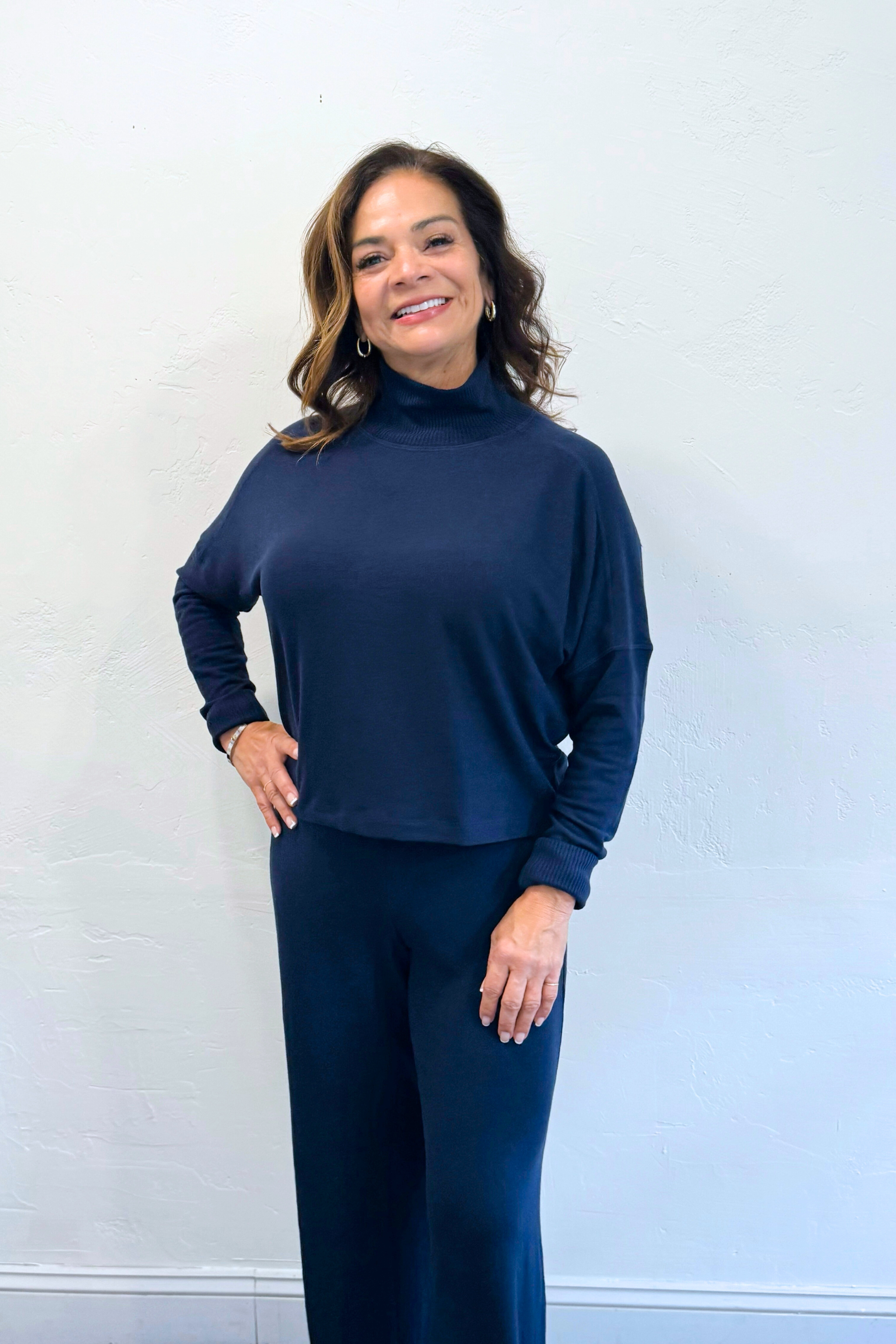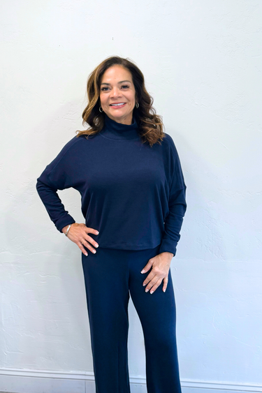 Frida Mock Neck Top – Madison Brushed Jersey in Nocturnal