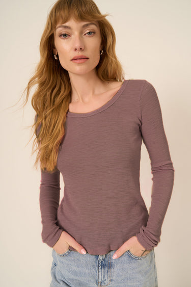 Project Social T Angel Scoop Neck Long Sleeve Tee – Dark Taupe