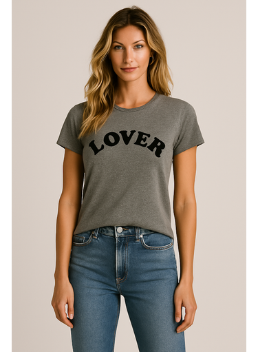 Bold, arched “LOVER” graphic print